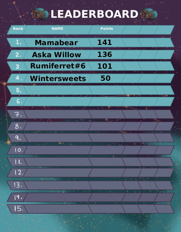 A public leaderboard will display the top 10 players. If your score is missing or incorrect, contact High Priestess Rhiannon for divine correction.